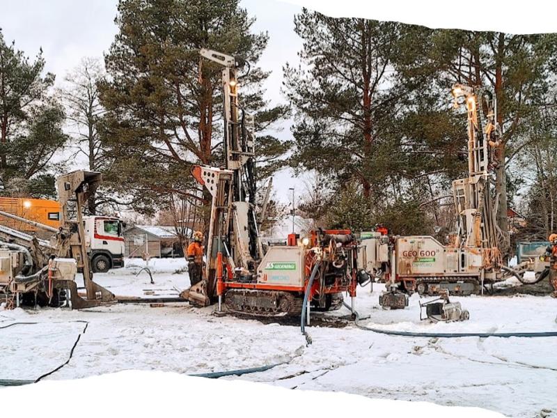 Vi var med och gjorde bergvärmeborrningarna samt installationerna av energifältet.